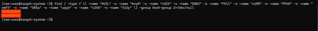 In a massive filesystem, manually checking every folder for these 12 files would be impossible. Instead, we use the find command to filter specifically for files that match our list and belong to the best-group group.