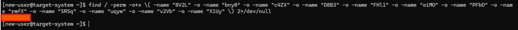 find / -perm -o+x \( -name "8V2L" -o -name "bny0" -o -name "c4ZX" -o -name "D8B3" -o -name "FHl1" -o -name "oiMO" -o -name "PFbD" -o -name "rmfX" -o -name "SRSq" -o -name "uqyw" -o -name "v2Vb" -o -name "X1Uy" \) 2>/dev/null